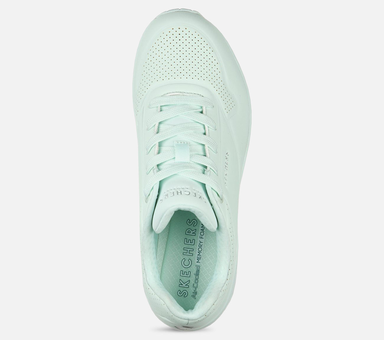 Skechers Street Uno Frosty Kicks -kengässä klassinen urheilullinen tyyli kohtaa äärimmäisen mukavuuden.Tässä nauhallisessa lenkkarissa on synteettinen Durabuck- ja rei'itetty koristeellinen yläosa, ilmajäähdytteinen Memory Foam -sisäpohja ja alustakiila, jossa on näkyvä ilmapehmustettu Skech-Air -välipohja.