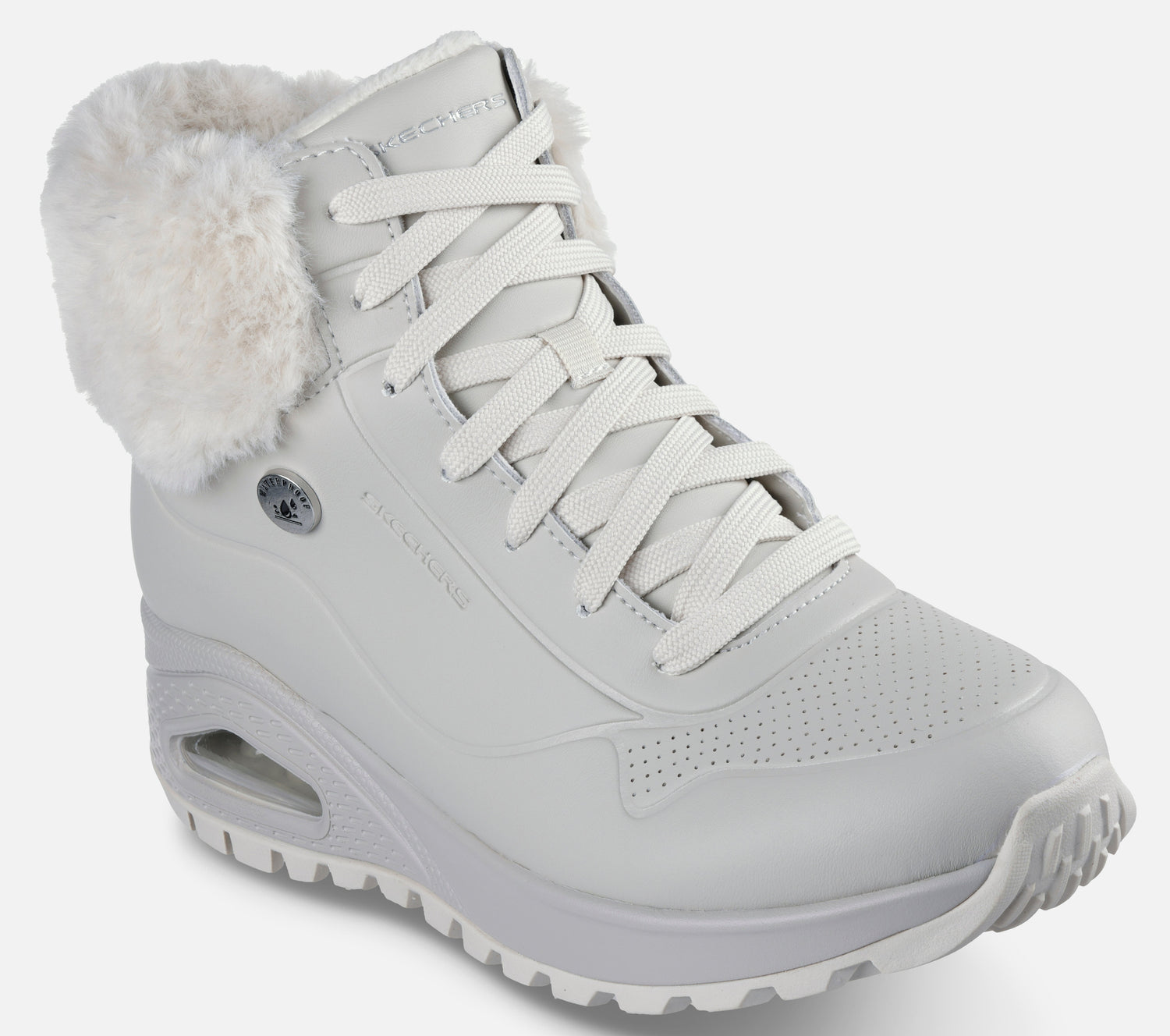 Säilytä tyyli kylminä talvikuukausina Skechers Uno Rugged - Fall Air 2 -saappailla. Tässä talvisaappaassa on nahkapäällinen, tekonahkainen turkisreuna ja sivuvetoketju. Suunniteltu Skechers Air-Cooled Memory Foam -sisäpohjallisella ja Skech-Air näkyvällä ilmatyynymellansulalla korkeaan mukavuuteen.